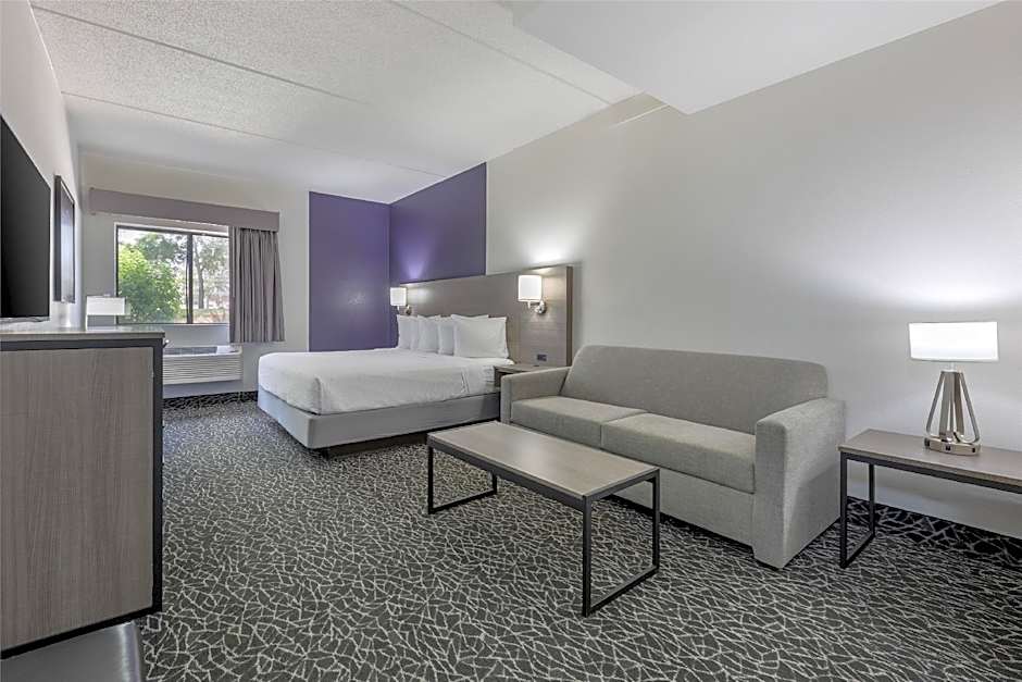Featuring a 32-inch flat-screen TV, this room also offers a microwave, refrigerator and coffee machine.