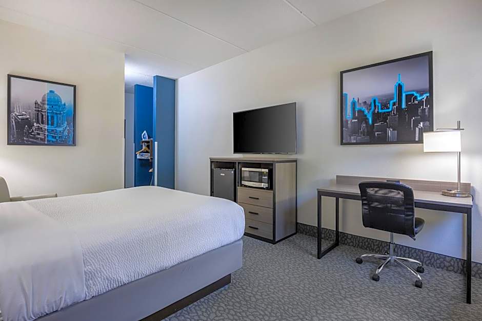This disability accessible room features a walk-in shower. A microwave, refrigerator and coffee machine are also included.